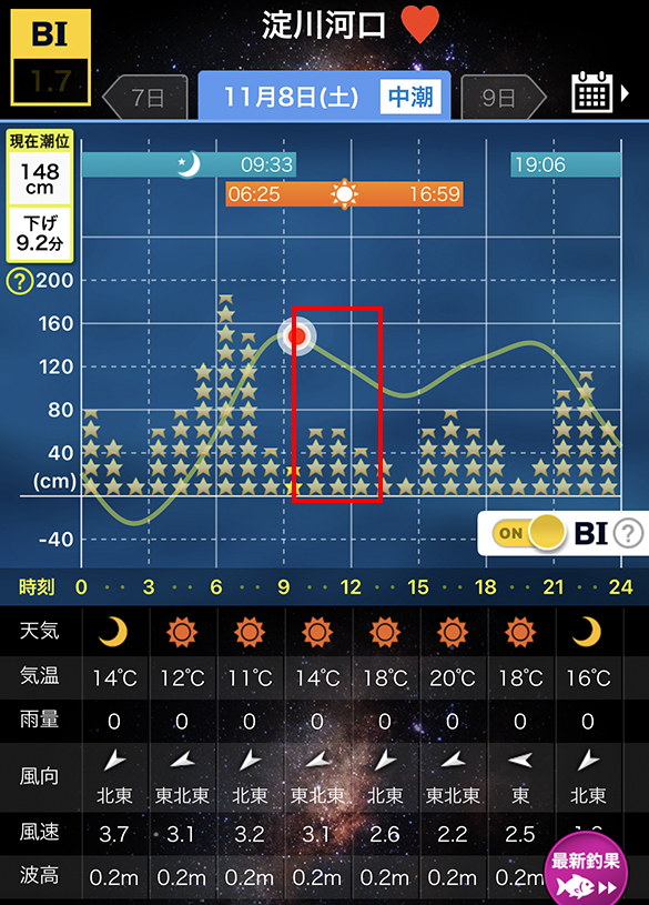 当日のタイドグラフ。